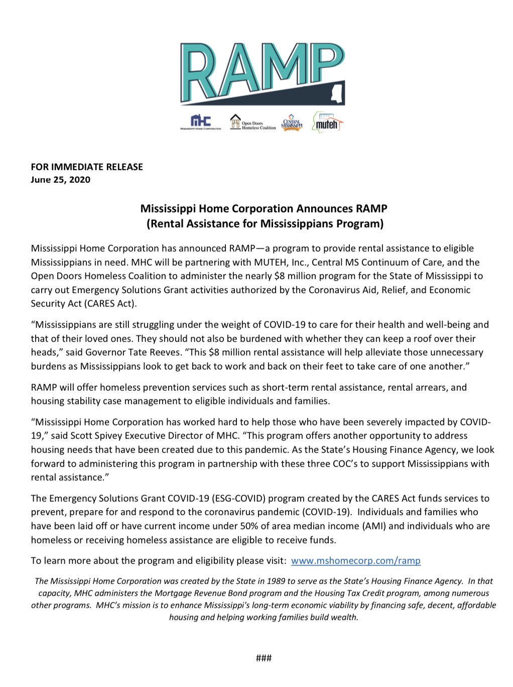 Ms Home Corp On Twitter Mhc Has Announced Ramp A Program To Provide Rental Assistance To Eligible Mississippians In Need We Will Be Partnering With Muteh Inc Central Ms Continuum Of Care And